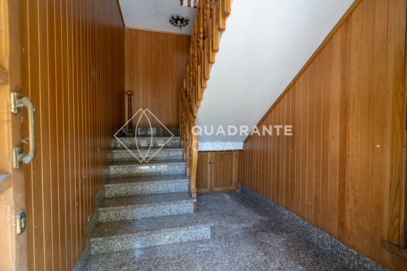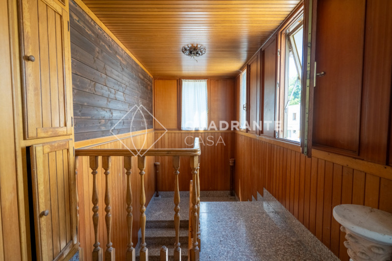 La proprietà si sviluppa su più livelli e offre ampi spazi interni da personalizzare secondo le proprie esigenze. L'ingresso accoglie con un'atmosfera calda grazie ai materiali utilizzati come il legno pregiato che caratterizza gran parte degli ambienti. La scala interna conduce al piano superiore, dove la luminosità è garantita dalle numerose finestre strategicamente posizionate.