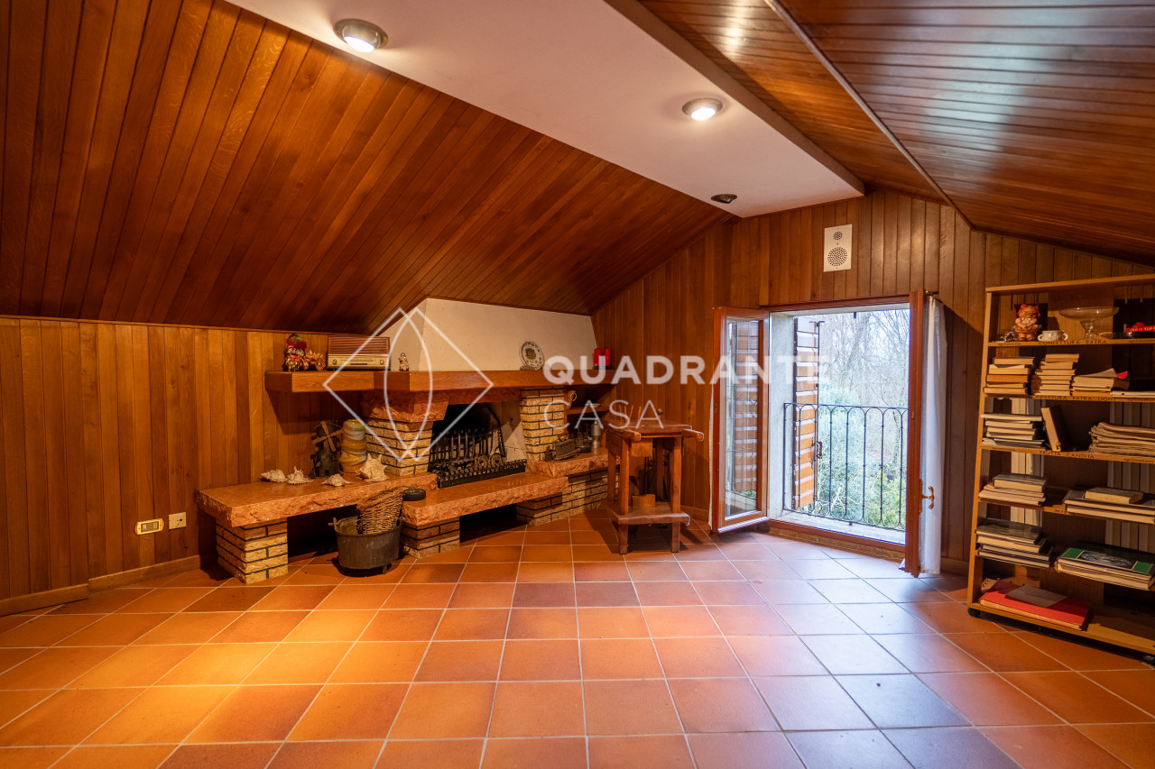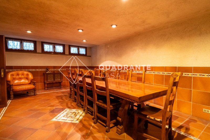 La residenza è composta da cinque camere da letto luminose, arredate con gusto classico che richiama l’eleganza senza tempo, oltre a quattro bagni ben distribuiti su più livelli. Gli ambienti living sono caratterizzati dalla presenza di diversi camini predisposti – sia nelle aree conviviali che nella suggestiva taverna rivestita interamente in legno –, ideali per creare atmosfere calde durante tutto l’anno. La zona giorno si apre verso il porticato coperto dove troviamo uno scenografico camino perfetto per cene all’aperto circondati dal verde rigoglioso del giardino.