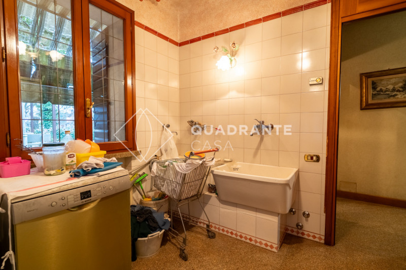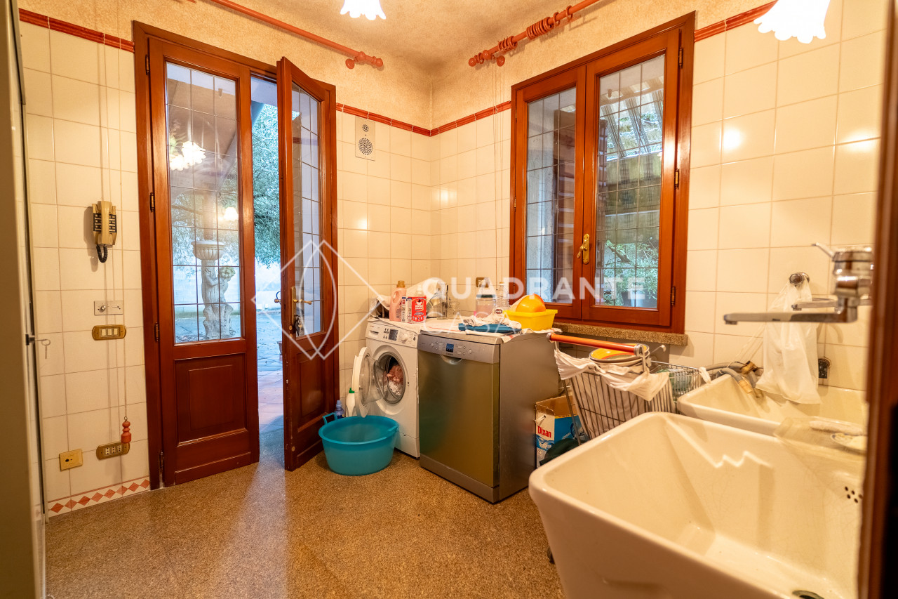 L'abitazione con una pianta dalle generose dimensioni al piano terra si compone inoltre di cucina, soggiorno, bagno, lavanderia, studio e disbrigo.