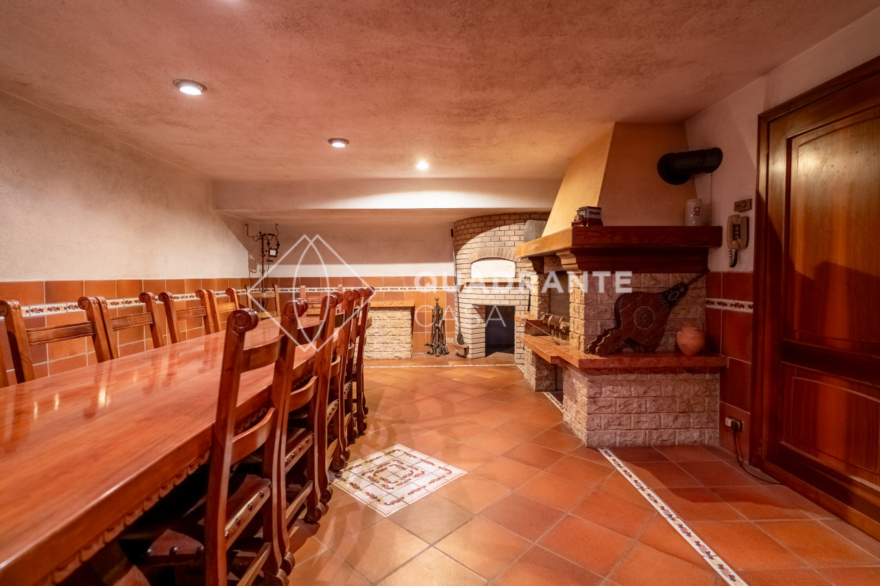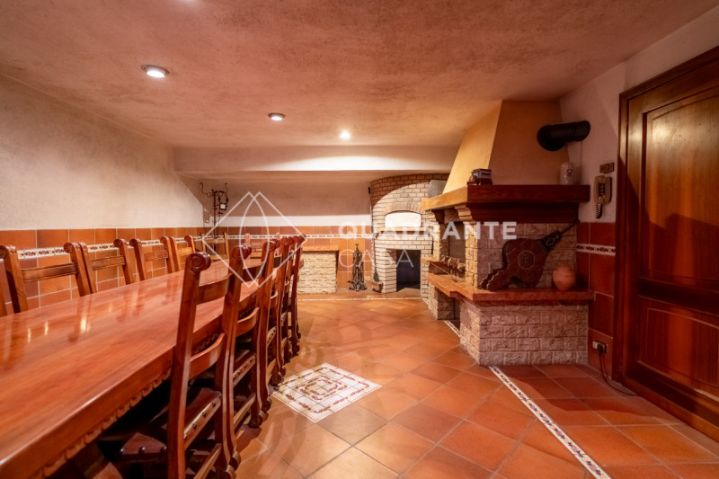 Nell'interrato grande cantina, taverna dotata di caminetto con forno a legna e cucina separata.