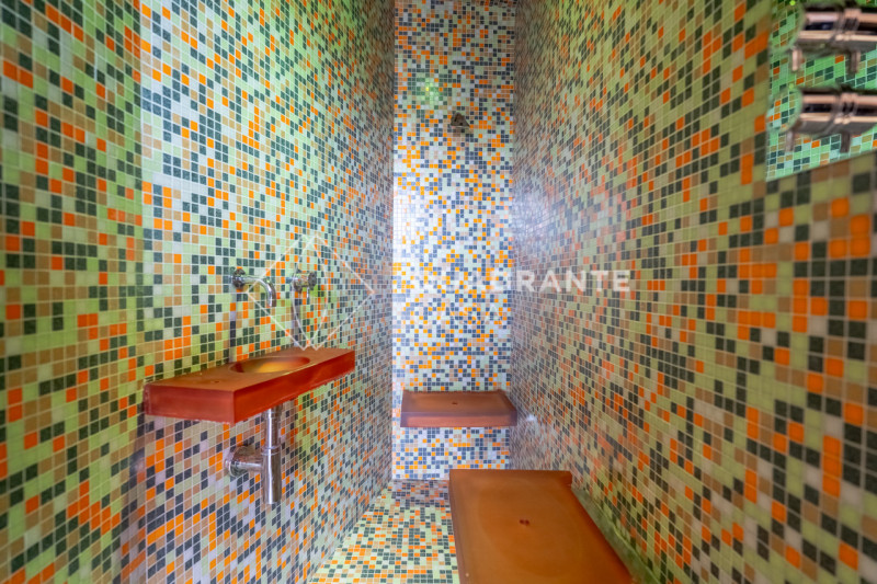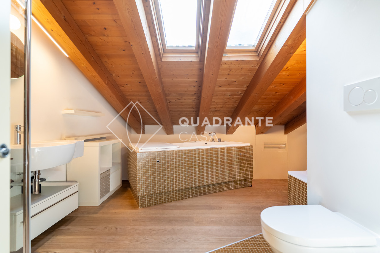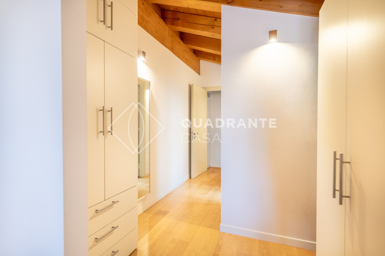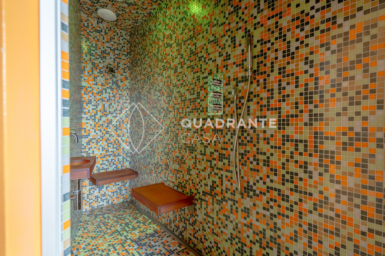 Dispone di impianto di ventilazione integrato nei controsoffitti per un comfort abitativo superiore; tra le dotazioni spiccano inoltre la termostufa moderna a pellet perfetta per creare atmosfera nelle stagioni più fredde, tende da sole e tapparelle motorizzate e due bagni dai dettagli ricercati – uno dei quali include uno splendido bagno turco rivestito con mosaico Bisazza.